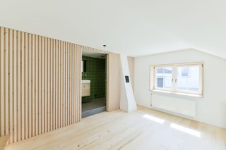 Auf der Anhöhe über dem Dorf Gossau liegt angrenzend zur Kirche das historische Wohnhaus, dessen Errichtung mittels dendrochronologischer Untersuchung auf das Jahr 1540 datiert wurde. Im Sommer 2020 wurde das Gebäude einer umfassenden Sanierung unterzogen und dabei eine signifikante Innengerüstkonstruktion mit drei Hochständern freigelegt. Im Zuge der Restaurierungsmassnahmen wurde ein bis zu sechs Meter langer Ständer aus heimischem Tannenholz rekonstruiert, mittels Weissschwanz am Bestand verblattet und mit Eichennägeln gesichert. Zur Optimierung der Lichtverhältnisse und der besseren Benutzbarkeit des Dachraumes wurden dem Dachwerk aus durchlaufenden Raffen zwei Schleppgauben eingefügt. Neben der energetischen Sanierung des Daches wurde der jüngere Gebäudeteil mit einer neuen hinterlüfteten Fassade aus vertikal angeordneten und mit Schattenfuge ausgebildeten Deckelschalung versehen. Die vereinzelten Fassadenöffnungen stellen den einzigen Unterbruch in der platingrau gehaltenen und durchlaufenden Holzstruktur dar, welche mittels innenliegend geführten Schiebeläden geschlossen werden können und auf diese Weise zu einem homogenen Gesamtbild beitragen.
